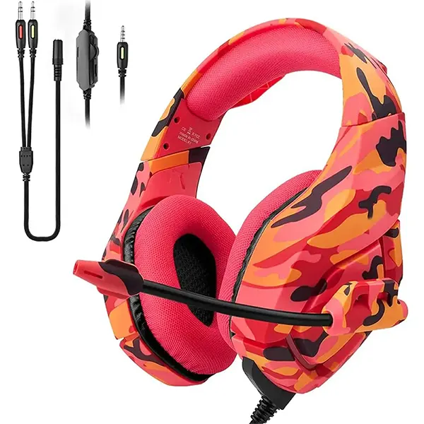 - Over-ear stereo gaming headset with camouflage styling (available in red, green, yellow, gray, navy blue)